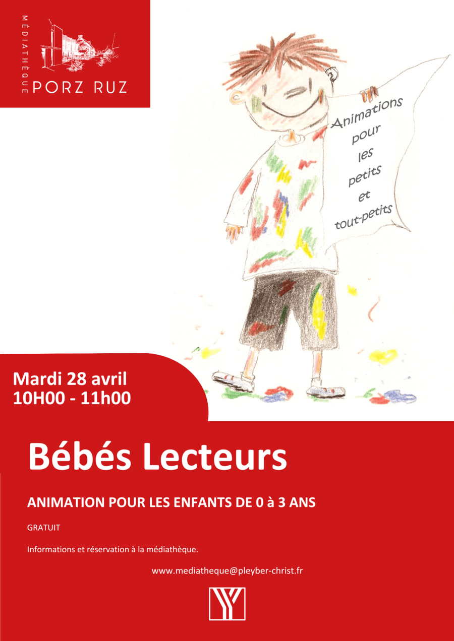 Mardi 28 avril de 10h00 à 11h00 : Séance de Bébés Lecteurs pour les enfants de 0 à 3 ans.